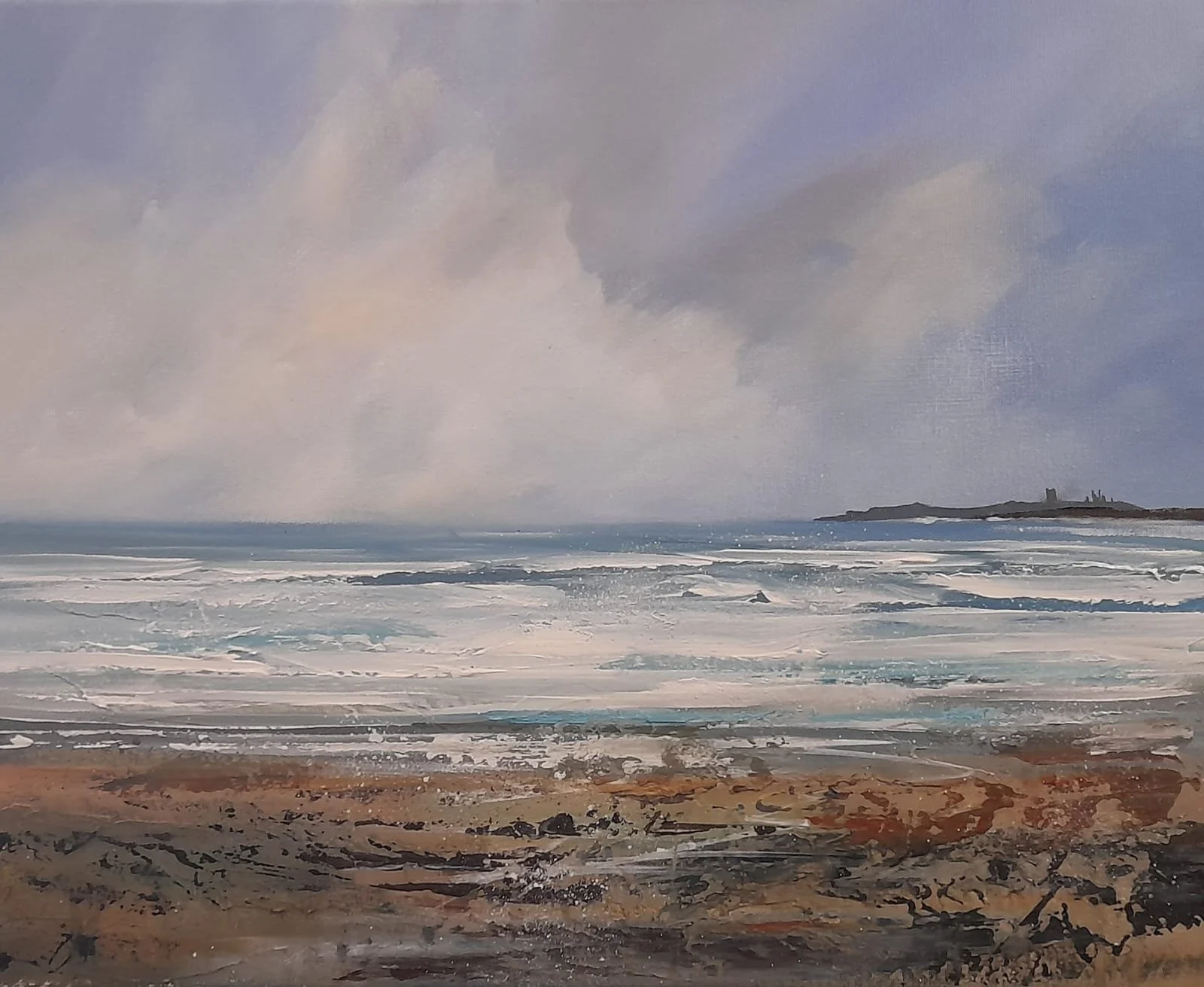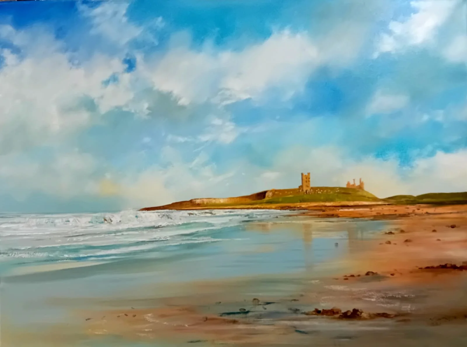 On Sunday, I had arranged to meet Kevin and Leanne, the clients who had bought my woodland picture and lived between Newcastle and and Durham, at The Dunstanburgh Castle Hotel for coffee and to exchange the painting . They were a delightful couple and big fans of my work, as we’re Leanne’s family it turned out. We chatted for an hour and they loved the picture.