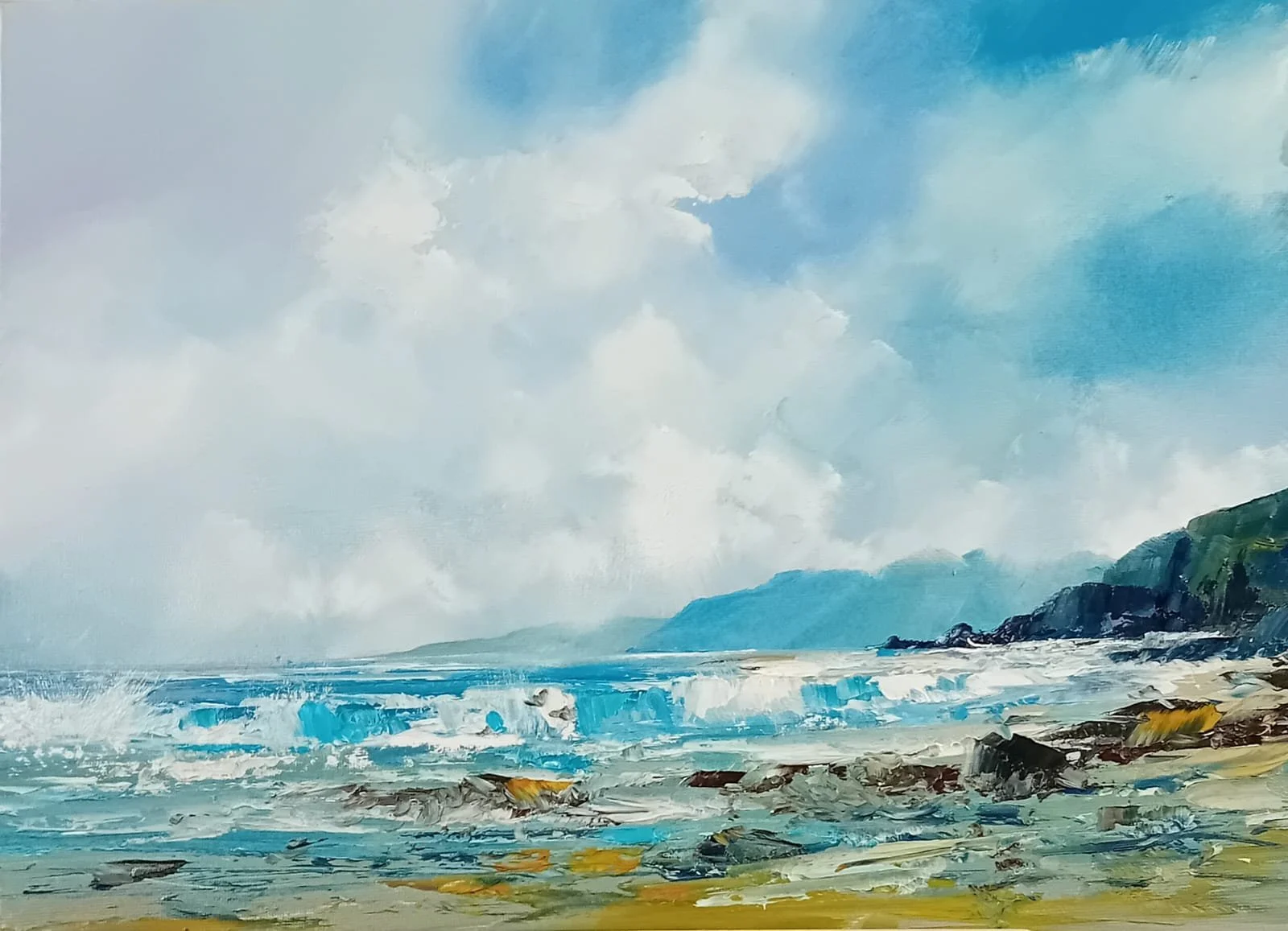 As LD1 was eased in the summer things got back to some normality. The tourists came in their droves, sales picked up, Dylan went back to work. I carried on painting. We even had a week off when my sisters and family, came up to stay locally for a few days (our only holiday this year). I picked up an exhibition at Gallery 45 at short notice and managed to hang the 30 paintings one Saturday morning. I managed to swap some paintings around in several of my local galleries.