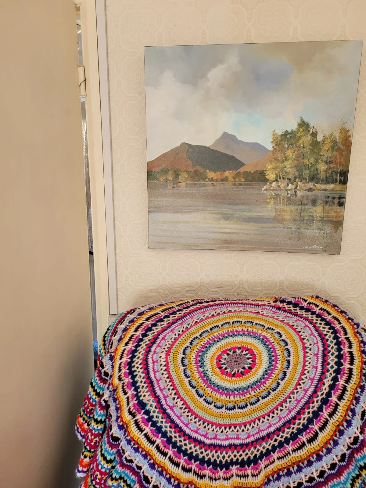 We chatted for an hour and a half over coffee in the Dunstanburgh Castle Hotel in Embleton. They told me that the “Spring“ woodland painting would actually be going to their son, who had a place for it over his Victorian green tiled fireplace. They wanted to commission me to paint 2, 50”×50” Autumn Woodland paintings to go under lights either side of a window in their living room. This was obviously good news for me. I, of course agreed and will get on them ASAP. I could do with a few more families like this!