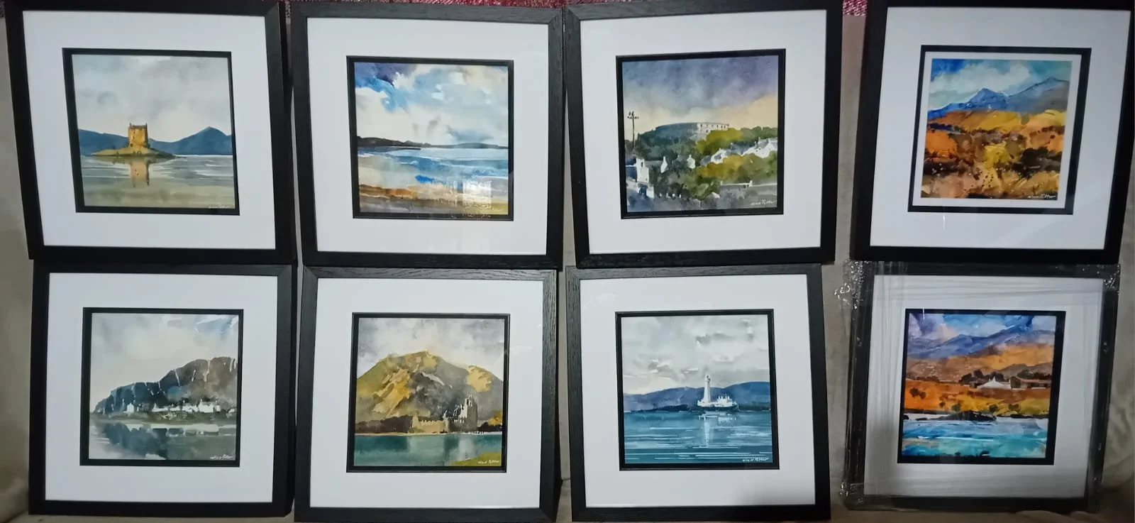 I cut a mount to fit with outer dimensions of 12”x12” to fit a 12”x12” frame. I tape the picture into it and add a backing card. I sign the painting and label the reverse before photographing. I then place it in a 12”x12” self-seal cello bag for storage and or display or frame them in a 12”x12” frame for sale. Some will shortly be up in my website shop.