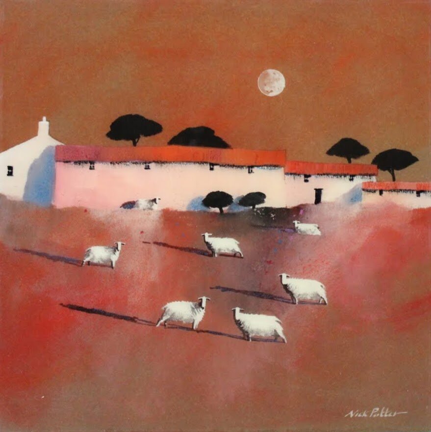Image 1 of 1 'Pink Barns' Sale Price: £150.00 Original Price: £3,950.00 Sold 16 inches x 16 inches Acrylic on Board Sold Added! 16 inches x 16 inches Acrylic on Board